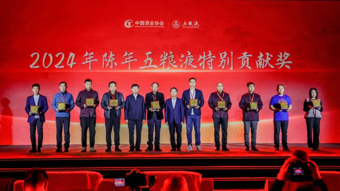 为了深化老酒文化的推广与传播,强化圈层认同,在当天活动的特别贡献人物颁奖环节,五粮液对过去一年中为陈年五粮液文化传播和市场推广做出突出贡献的个人进行了表彰。