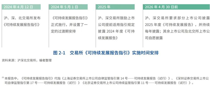 国内三大交易所于2024年4月12日分别发布《可持续发展报告指引》。白皮书初步估算国内上市公司中被要求强制披露的公司数量约457家;其中,在内地和香港两地同时上市的公司约有148 家,需统筹兼顾两个市场信息披露规则。这一举措标志着我国上市公司的可持续发展信息披露进入了全新阶段。