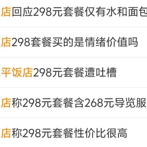 另据潮新闻报道,工作人员接受记者询问时称,由于近期引发的热议,目前298元套餐在团购平台暂时未开放购买,游客可以在官方公众号了解套餐详情和下单。