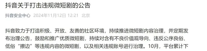 这其中的原因嘛……自然是广电总局网络视听司之前发布管理提示,对于“霸总”题材微短剧创作中出现的不良倾向,进行及时提示和规范,推动微短剧创作持续向上、向善、向美。