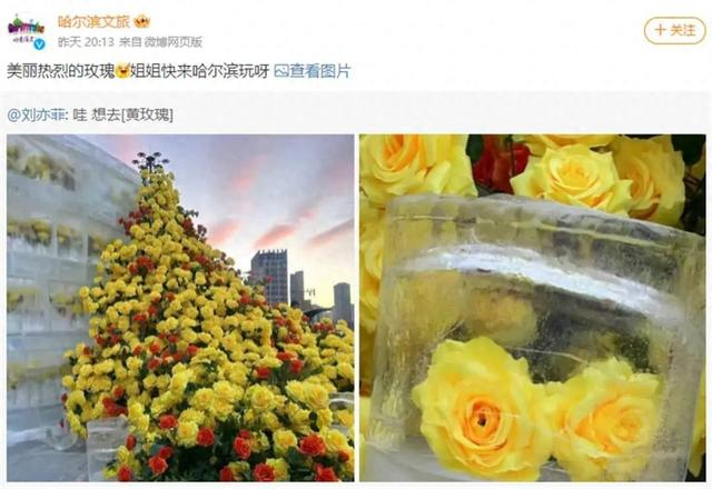 哈尔滨冰封黄玫瑰美上热搜!刘亦菲:“哇,想去!”哈尔滨文旅回应