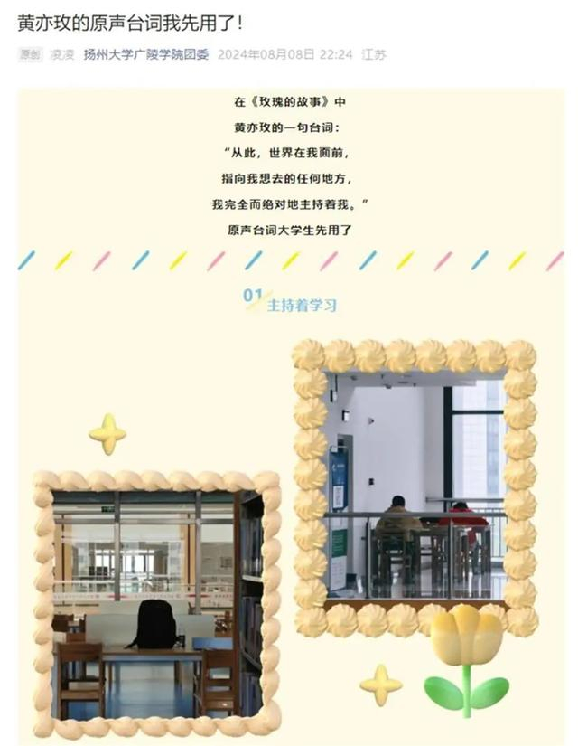 这句原声台词被许多的大学生借用,用于“主持着学习、快乐、追求、友谊”。