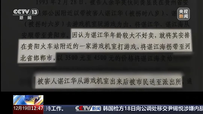 经法院审理查明,在1993年至1996年3年间,两人疯狂作案共拐卖了15名儿童,大多是4到7岁的孩子。其中1993年在贵州安顺,两人将谌江华(被拐时八岁)、谌江海(被拐时六岁)以去游戏机室玩游戏为由,带至贵阳市。