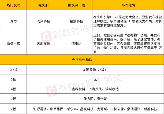 正如昨日文章所强调的,本轮的豆包概念的炒作重心主要着落在了硬件算力方向,今日进一步加强并向铜高速连接、液冷服务器、芯片等细分方向全线扩散。并且值得注意的是,今日领涨的算力股不仅局限于小市值的题材标的,其中不乏像浪潮信息、中科曙光、紫光股份、润泽科技这样的容量标的身影,故在算力概念股的做多热情被市场全线点燃后,后续仍可留意其中的补涨机会。