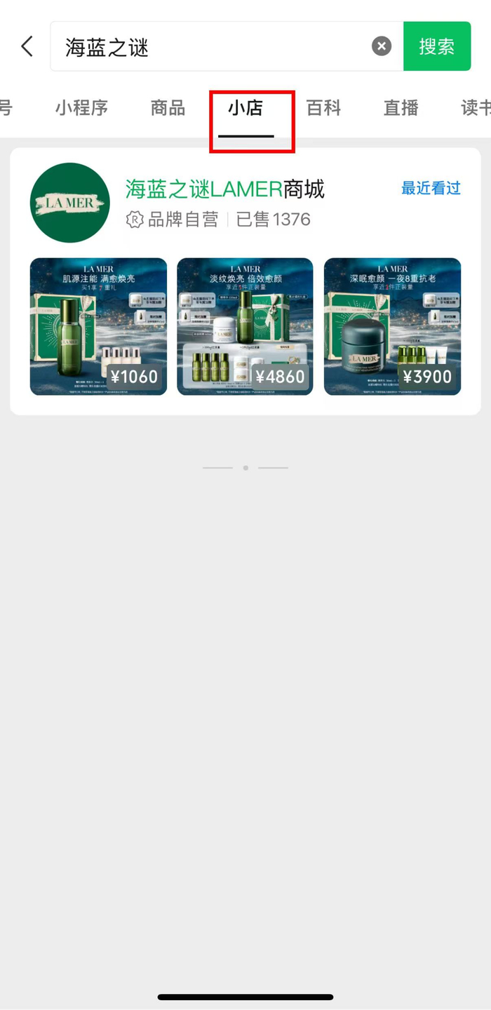 首先在微信搜索栏搜索关键词,然后划到小店这一列,可以看到相应的店铺。