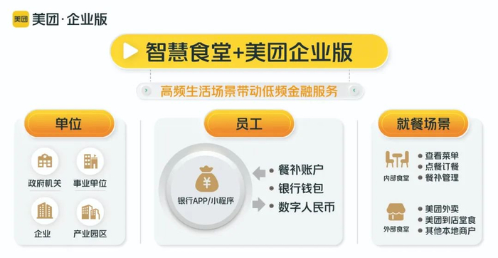 美团企业版与商业银行共建的“智慧食堂模式”就是一次很好的探索实践。