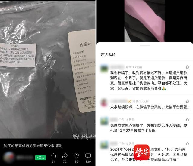 有事找紫牛|视频号上买衣服货不对板退款难上加难,溧水市场监督局:近期接到大量投诉