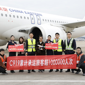 今天(9月19日),C919飞机刚好累计承运旅客突破100万人次。当天从上海虹桥机场飞往西安咸阳机场的东航MU2158航班上,旅客林女士成为C919的第100万名旅客。