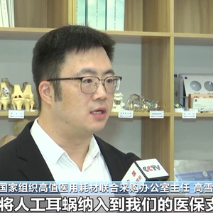 国家组织高值医用耗材联合采购办公室主任高雪:现在人工耳蜗类的产品有15个省份左右已经可以报销了。我们通过集中带量采购之后,价格有一个比较大幅降低,也是为我们未来考虑在全国范围之内,将人工耳蜗纳入我们的医保支付范围,打下一个比较好的基础。
