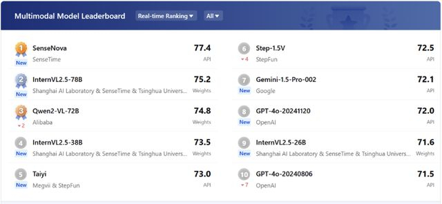 刚刚,商汤科技日日新SenseNova多模态大模型,在权威综合评测权威平台OpenCompass的多模态评测中取得榜单第一。
