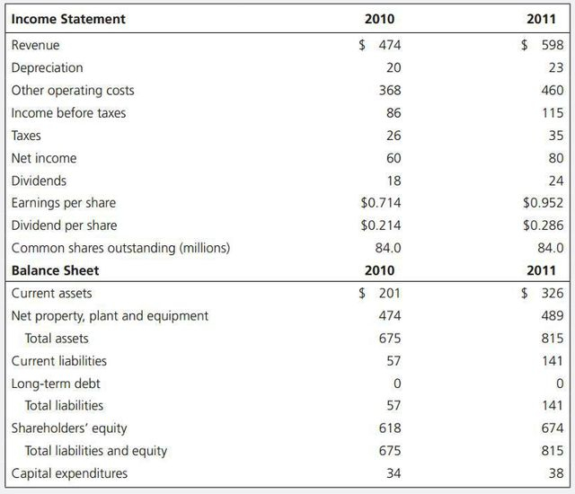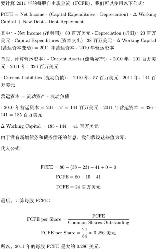 提问:使用下表中的数据,计算2011年每股FCFE的金额。