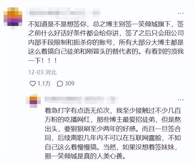 知~止:我看说是一笑倾城打算带那个女大学生,然后签了合同给她热度,结果热度有了女大学生打算解约。