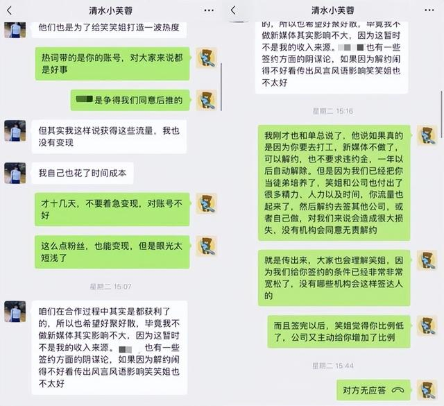 12月18日,“一笑倾城”在直播展示聊天记录回应争议,其中涉及直播分成、违约金等问题,并表示自己已经尽力帮助清水小芙蓉(一笑倾国),并展示了两人的聊天记录,证明自己并未欺骗或伤害清水小芙蓉。