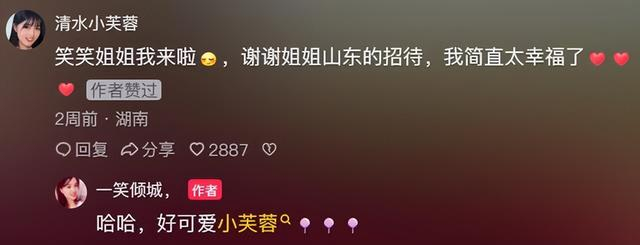 视频中,跟一笑倾城一起出镜的女生网名叫清水小芙蓉。评论区里,两人还亲切互动了。