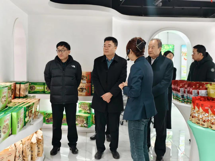 在甘味品牌中心,调研组参观了特色农产品展销区,对浆水酸奶、兰州百合、静宁苹果等“甘味”产品表现出浓厚的兴趣。随后还体验了甘味大数据中心、甘味甄选直播间,以及农耕文化、科普、文创等展示区,共同观看了《厚道甘肃 地道甘味》宣传片。