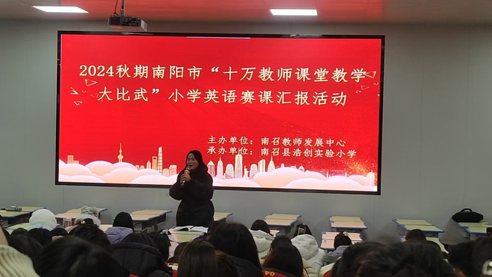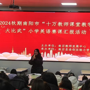 南阳网讯(通讯员王紫菡)为巩固提高南阳市“十万教师大比武”成效,持续开展课堂教学改革,提升课堂教学质量,2024年12月19日上午,在城郊乡浩创实验小学成功举行了小学英语学科2024年秋市级大比武汇报展示课活动。