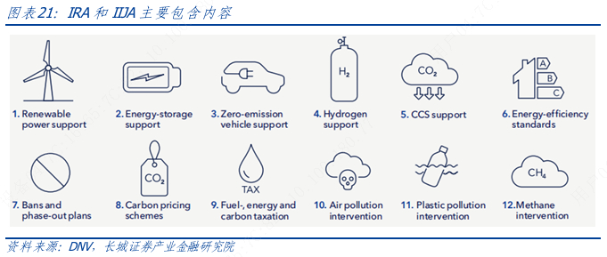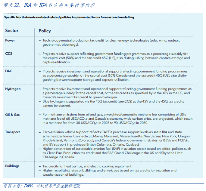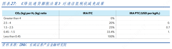 政策支持方面主要由《降低通货膨胀法案》(IRA)根据其45V条款的二氧化碳氢排放阈值,引入了清洁氢生产税收抵免(PTC)或投资税收抵免(ITC)。