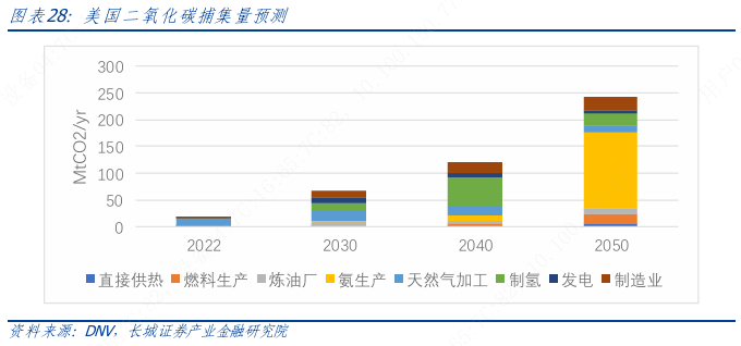 从目标看,美国2030年目标将温室气体排放减至2005年排放水平的50%,2035年实现电力系统零排放,2050年实现碳中和目标。从目前预测看,尽管在政策刺激下(IRA法案、IIJA法案),美国的低碳化进程将加速,但即便是最乐观的预测,至2050年美国也很难实现净零排放,仍有20~30亿吨的温室气体需要用造林和CCUS等负碳技术手段吸收。