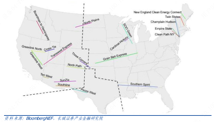 从长远看,由于美国的当前及未来的负荷中心主要在东部各州(除加州),而风电光伏资源富集的区域位于中部及南部,资源与负荷地理上的不匹配使得电网建设的要求十分巨大,这与我国的情况较为类似。据NERL预测,至2035年电力系统碳中和年,美国至少要增加2000英里至10000英里的高压输电线路。