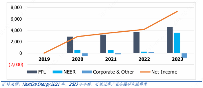 NEER 由NEE 的竞争性能源业务和费率监管输电业务组成,其战略强调的是长期合同资产的开发、建设和运营,重点关注清洁能源。NEER 目前在美国和加拿大的能源市场拥有、开发、建设、管理和运营发电设施,还包括对其他以清洁能源为重点的企业的资产和投资,如储能和可再生燃料。NEER 的大部分电力来自清洁和可再生能源,是世界上最大的风能和太阳能可再生能源发电商。