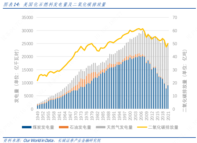 就发电行业而言,美国过去 10 余年的减碳路径主要是通过激进的退役煤电并同时快速发展天然气发电完成的。
