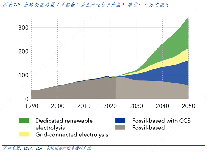 低碳氢能将在能源转型中发挥重要作用。氢能将在终端用能部门脱碳和电力系统灵活性方面发挥关键作用。根据IRENA预测,到2050年氢能占终端能源消费总量的比例将从当前的忽略不计增至14%,且全球94%的氢气将通过可再生能源制取。