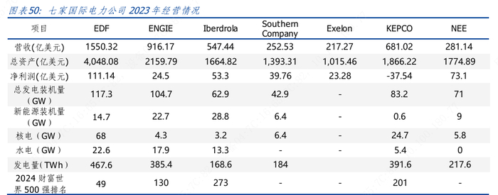 核电资产在发达国家都普遍面临初投资大、项目建设期长的挑战,存量核电资产在法国EDF、美国南方电力、佛罗里达电力、韩国电力的发电资产中起到了压舱石的作用。从长期看,特别是在风光资源有限,用电负荷集中的区域,核电仍是具有竞争力的清洁能源发电形式。在满足安全的前提下,在我国经济发达的沿海地区,核电相比火电有一定的度电优势,是新型电力系统中基荷的优势电源。叠加AI算力对核电的需求,核电的稳定性和绿电价值将进一步得到市场认可。全球的电力企业都在重视核电资产的配置与投资。大型核电项目初投资大、监管严格、运营复杂,也比较适合我国大型国有发电集团。