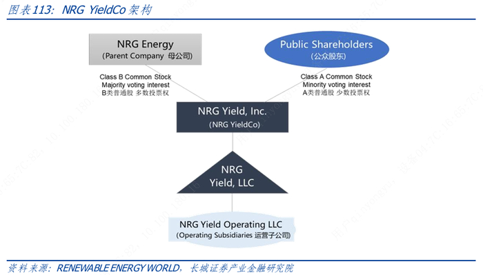 YieldCo 主要是美国的传统电力公司和公共事业企业为了向低碳未来过渡而共同开发的模式,公用事业可以通过出售完全运营、技术成熟的可再生能源资产,然后将收益重新用于开发风能、太阳能和水力发电领域的新可再生能源项目,从而回收资本,能够避免达到可再生能源领域开发的资产饱和,并可以在不限制股本的情况下继续建设可再生能源项目。