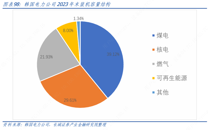 【2023 年电价经历了几轮涨价】自2022年4月以来,韩电已经上调了五次电费,累计涨幅39.6%。2023 年一季度,该公司将电价上调13.1韩元/千瓦时(约合0.07元人民币/千瓦时),随后二季度又上调了8韩元/千瓦时(约合0.04元人民币/千瓦时)。2023年全年,电费上涨了29.8%。借助电价上涨和燃料价格下降,韩国电力2023 年第三季度当季实现了扭亏。但此次电费上调幅度不足以使韩国电力的债务降至可持续水平,而且叠加中东冲突导致油气价格波动,盈利水平将很难维持下去。