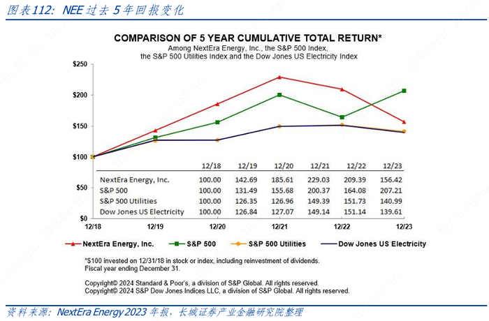 NEE 构建了一个较为稳定的商业模式。在电力供需趋紧且新能源快速增长的背景下,传统电源、输配电基础设施的建设对电力系统的支撑作用将愈发强化,且重要性也将持续凸显。一方面,NEE存量电源资产与管网资产的稳定盈利可持续,另一方面增量电源、储能与管网资产的业绩提振可预期,其同时兼顾了传统公用事业企业的业绩稳定性与新能源发展以及相关配套基础设施投入所带来的成长性,希望这种模式能够对国内传统能源电力企业转型与新能源布局提供一些参考意义。