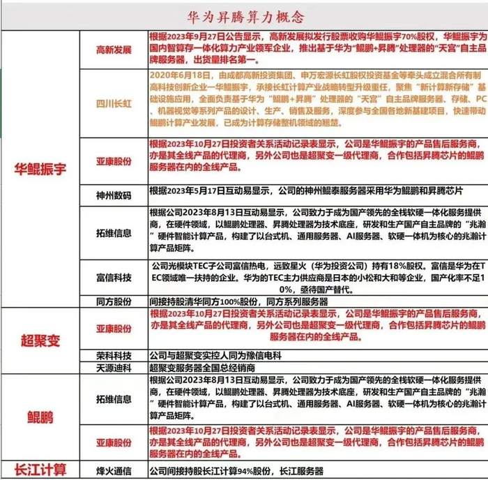 华为算力概念股: