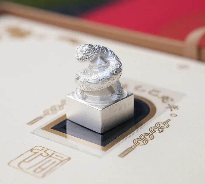 收纳印章的部分设计为传统“门洞”形,象征“蛇年纳福”,不仅能妥善保存印章,还带有浓厚的文化内涵。