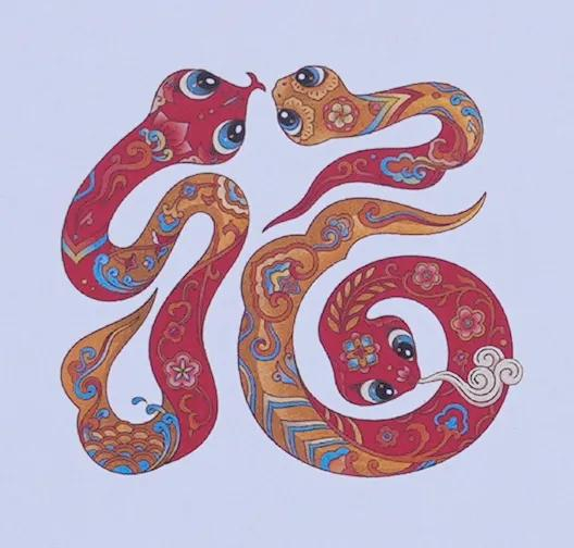 “蛇”又称“小龙”,在我国传统文化中,寓意长寿、吉祥、智慧、财富。华夏祖先“女娲伏羲”的形象,就是人首蛇身;中国古代四大神兽之一的玄武,是蛇和龟的结合体。