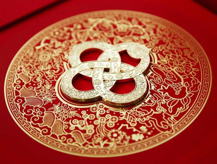 盘绕的蛇身形象,如同数学的无穷符号,辅以云纹、如意等纹饰,寓意新的一年“好运无穷”。