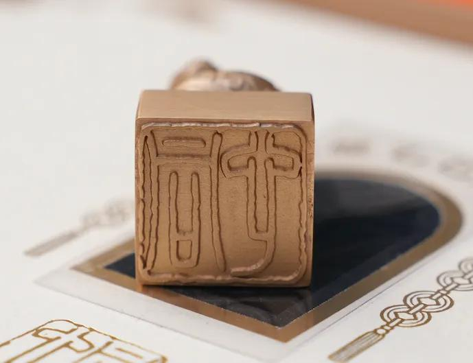 铜版印章,由精选黄铜铸造,表面经精细抛光与防氧化处理,持久保存不失光泽。每套印章均刻有唯一编号,编号工整清晰,彰显独特珍贵。