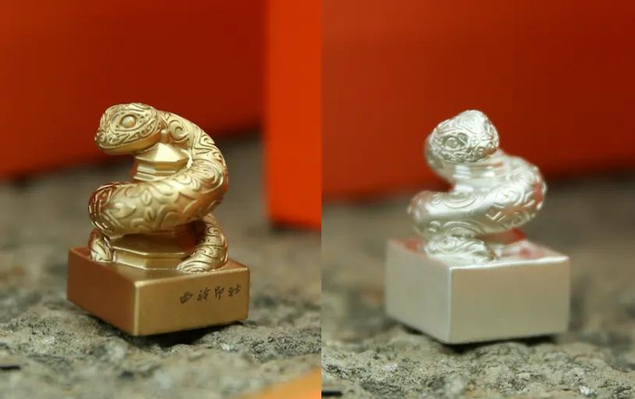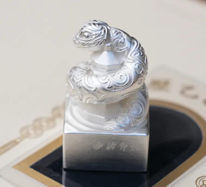 以及西泠印社生肖金蛇印章,有999足银款和黄铜款两个可选。