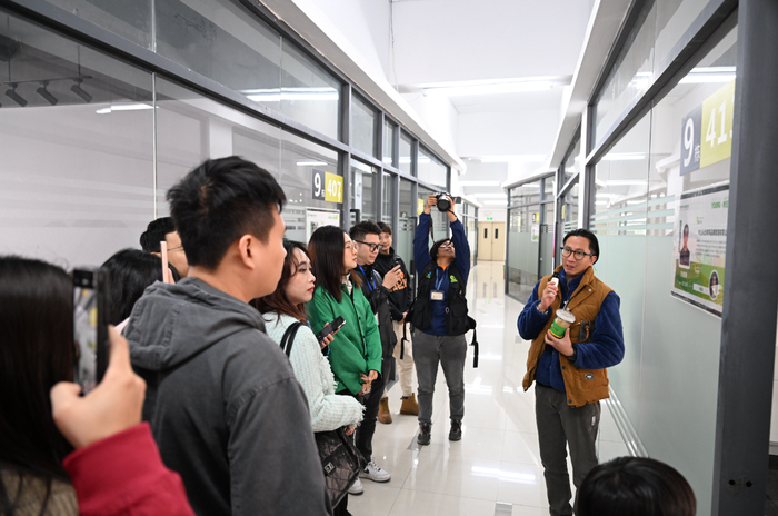 刘纯铸向来访澳门青年介绍中山市易创空间创业孵化基地