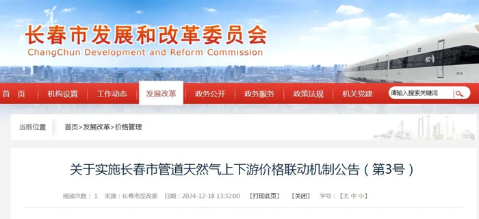 近日,根据《政府制定价格听证办法》(国家发展改革委员会第21号令)规定,长春市发展和改革委员会发布《关于实施长春市管道天然气上下游价格联动机制公告》。