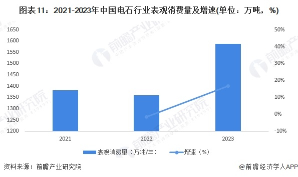 4、2023年中国电石表观消费量约1587万吨