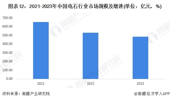 2021-2023年,中国电石产品的价格逐年下降,由2021年的4723.48元/吨下降至3050.4元/吨,导致2018年至2023年我国电石行业市场规模呈现下降趋势,2023年,中国电石行业市场规模下降至484亿元。