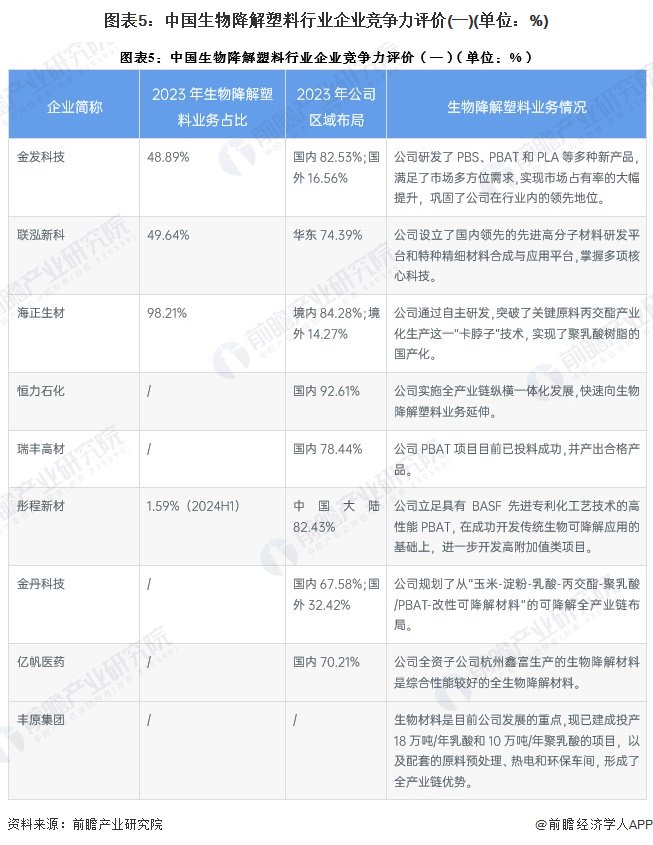 中国生物降解塑料行业企业竞争力评价