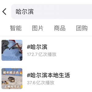 ▲ 快手平台“哈尔滨”相关话题累计播放量