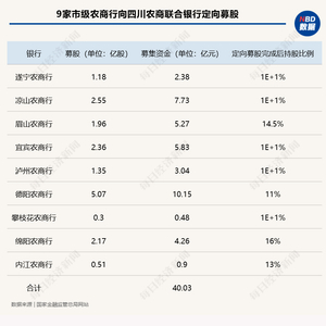 四川农信改革深入推进!9家市级农商行向四川农商联合银行定向募股合计40.03亿元