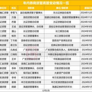 2024券商资管高层多变动,7位新董事长、9位新总经理接棒,三大关键词看变动原因