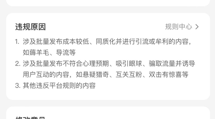 2.涉及批量发布不符合心理预期、吸引眼球、骗取流量并诱导用户互动的内容,如悬疑猎奇、互关互粉、双击有惊喜等;