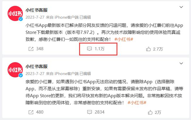 与此同时,在@小红书客服 官方微博账号上,其最后一次更新动态已是2023年7月,但该动态下评论区今天出现了上千条评论,众多网友就封号一事,向官方讨要说法。