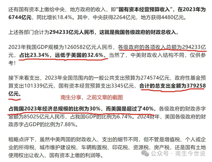南生在之前的文章中已经给感兴趣的网友们分享了中美两国GDP中“劳动者报酬占比,财政收入、支出与赤字占比”(如下图)。今天的文章将再度分享一个重量级数据——制造业在GDP中的比重。