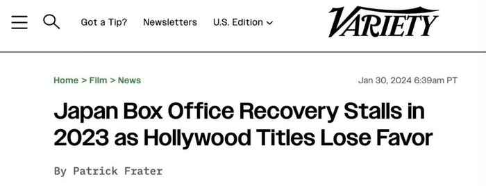硬糖君检索日韩网页发现,原来邻国网友从去年开始也在讨论好莱坞电影卖不动的话题。好莱坞电影在日本失宠甚至招来了美媒的报道与关注。据美媒VARIETY报道,2023年好莱坞电影在日本的市场份额相较于2019年下降了15个百分点,仅剩33%。