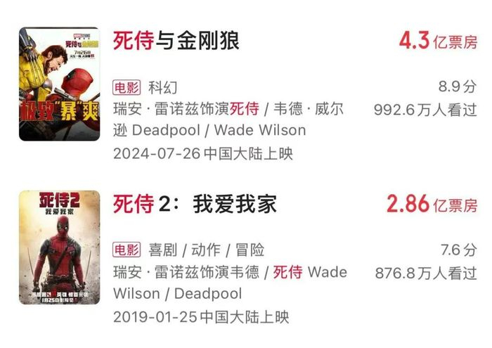 不全是因为中国,中国观众的喜好真没到能左右好莱坞海外票房的地步。以两部在中国上映的《死侍》为例,《死侍与金刚狼》相比《死侍2》的海外票房占比下降了6个百分点,但咱们中国区贡献的票房份额反而增加了。早年,咱们中国内地票房贡献率还不高的时候,好莱坞电影的海外票房占比其实一直很高。