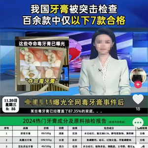 中国消费者报报道(记者李燕京)“百余款牙膏被抽检,仅以下7款成分合格”“我国牙膏被突击检查,百款中仅以下6款成分合格”……近日,有消费者向记者反映,经常在一些视频平台看到这类“抽检消息”。上述“消息”结论属实吗?对此,记者进行了调查。